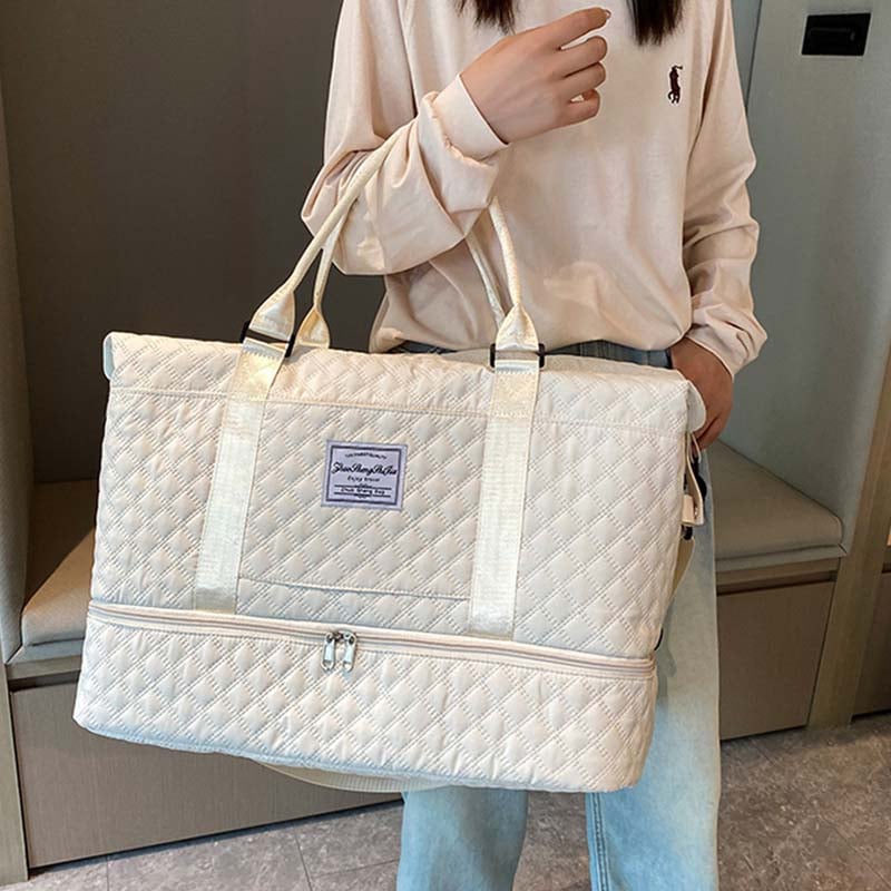 • GROTE CAPACITEIT UITBREIDBARE DUFFELTAS - Deze reistas voor dames heeft verborgen uitbreidingen aan de onderkant van de rits, waardoor u meer opbergruimte hebt voor onverwachte items op de reis. Het kan het probleem dat wordt veroorzaakt door te veel items, aanzienlijk oplossen en is een perfecte betrouwbare metgezel voor training, sportschool, sport, reizen, weekend, bagage, winkelen, wandelen en kamperen.