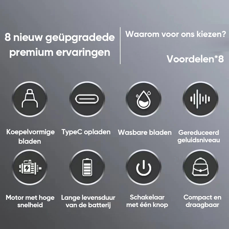 Stijlvol ontwerp, compact en draagbaar, voor pijnloos en professioneel neusharen trimmen, laat je van je meest zelfverzekerde kant zien, altijd en overal!