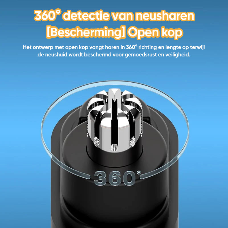 • GLAD, ZACHT TRIMMEN - 7000 RPM motor met hoog koppel drijft dubbelzijdige bladen aan voor schoon, scherp trimmen. De afgeronde platte snijkop past in de neuswand waardoor de haren soepel en precies worden verwijderd zonder pijnlijk of onaangenaam trekken.  Neushaartrimmer voor mannen van 360° vangt neusharen op en trimt ze op de juiste lengte om de gezondheid van de neus te beschermen.
