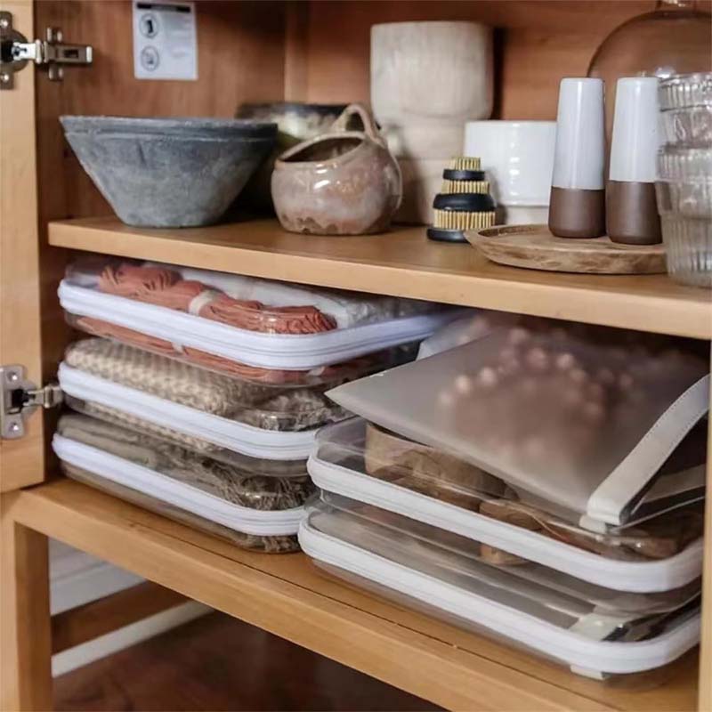 • Handig ontwerp: dankzij het doorzichtige plastic kunt u al uw opgeslagen artikelen in één oogopslag zien, waardoor u tijd en moeite bespaart bij het zoeken naar wat u nodig hebt.