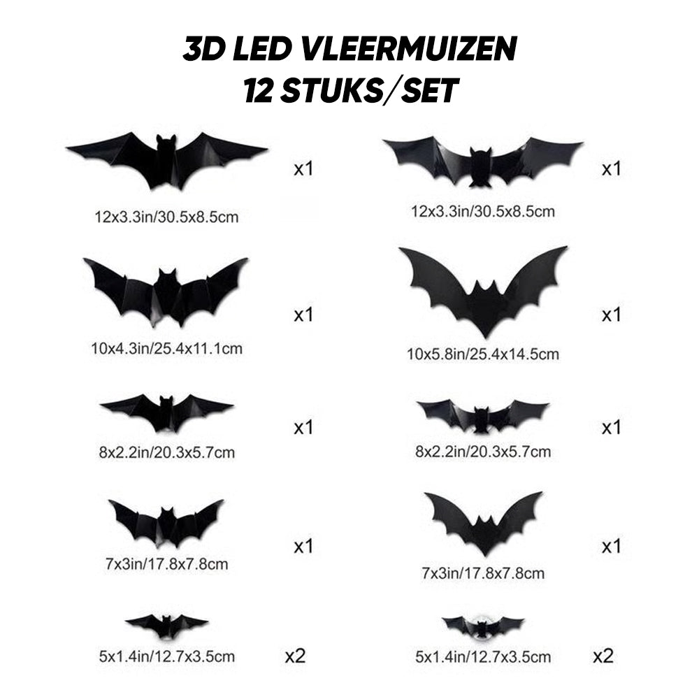 Transformeer je ruimte in een griezelig mooi tafereel met onze 3D Vleermuis LED Decoraties! Deze set bevat 12 vleermuis-vormige wandstickers met ingebouwde LED verlichting, die een betoverende gloed creëren - perfect voor Halloween, themafeesten of het hele jaar door gotische decoratie.