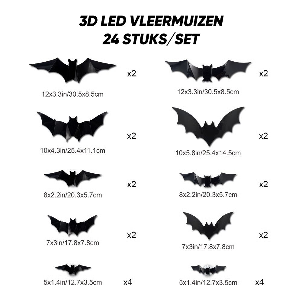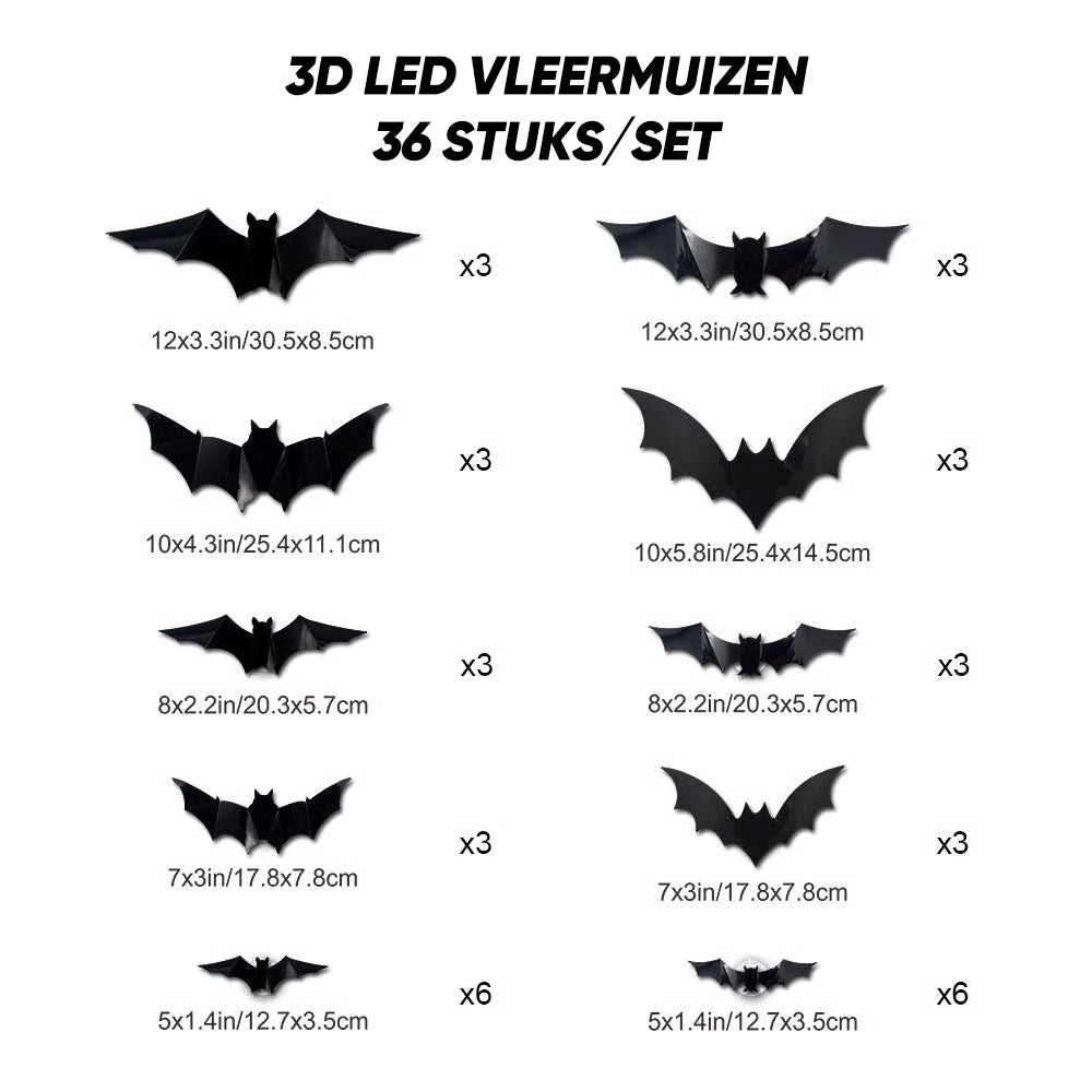 • 🔹 Set Inhoud: 12 vleermuis-stickers (verschillende maten voor dynamisch effect)