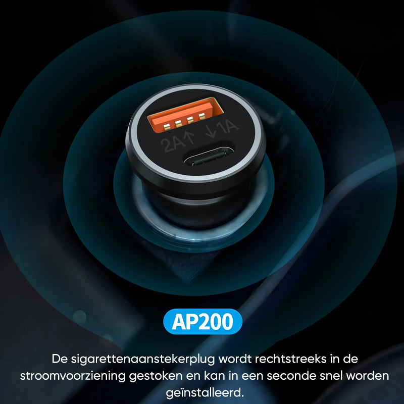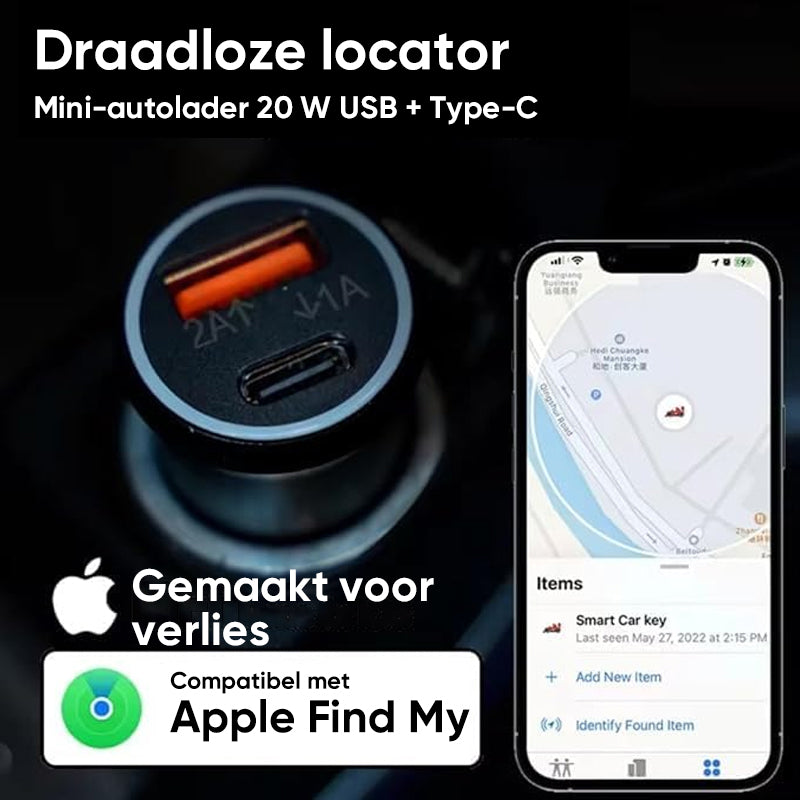 Zeg vaarwel tegen vertragingen bij het opladen en auto's die zoekraken met de AP200 - een krachtige 2-in-1 autolader en GPS-tracker ontworpen voor Apple gebruikers!