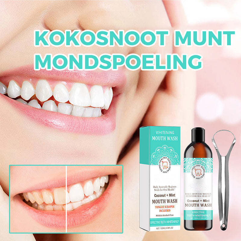 Deze authentieke mix van oliën en vitamines is een natuurlijk mondwater voor het bleken van tanden dat uw adem verfrist en gezond tandvlees ondersteunt.